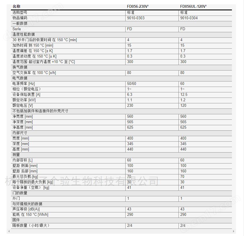 四、德國賓德Binder安全干燥箱技術(shù)參數(shù)